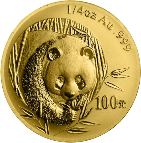 De gouden Chinese Panda is een zuivere beleggingsmunt die jaarlijks wordt uitgegeven en bekendstaat om zijn 99,9% zuiverheid (24 karaat). De 1/4 oz Panda weegt 7,775 gram en is geliefd bij zowel beleggers als verzamelaars dankzij het jaarlijks wisselende ontwerp.